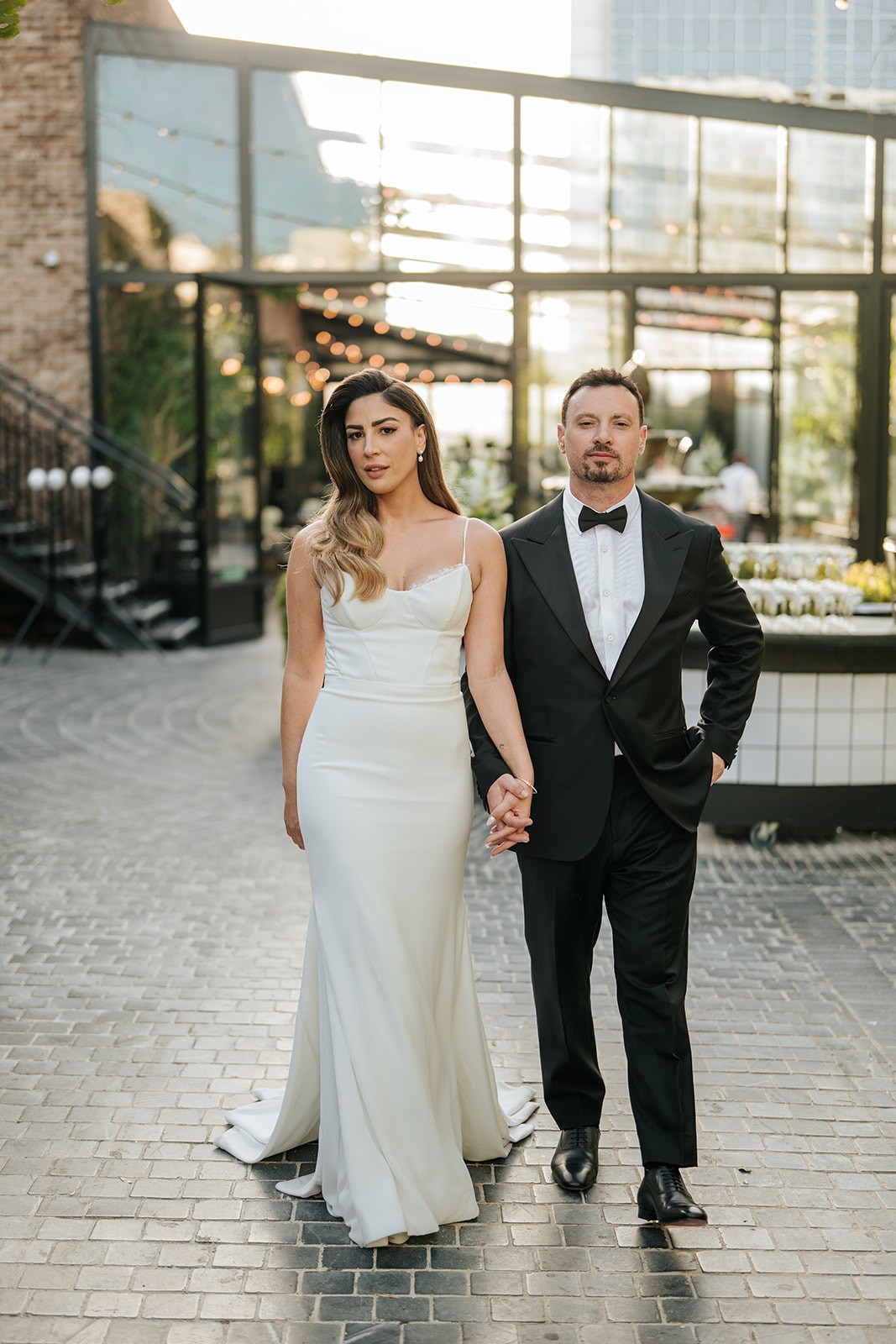 “An International Wedding at the Terminal”: dramatic draping and lighting, champagne and signature cocktail stations, a refined culinary experience by Dudu Friz, a powerful set by Vitaly the electronic violinist, and live performers filling the space with energy.